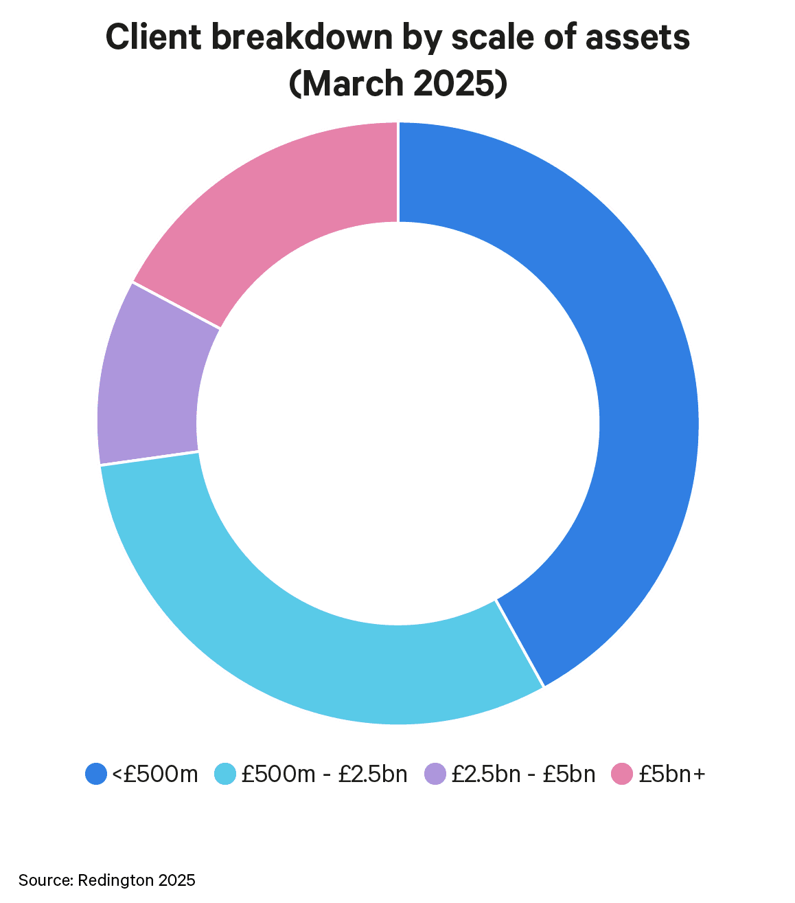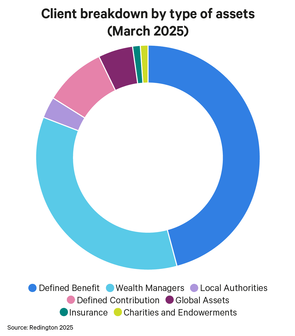 We continued to diversify our client base in 2024 as part of ongoing plans to expand our offering to Defined Contribution (DC) pension schemes, local government pension funds, endowments, foundations and wealth managers, as well as insurance and savings providers. We have invested significantly in sustainable investment and stewardship work over the last few years to build our skills and expertise to deliver more effectively for all clients.